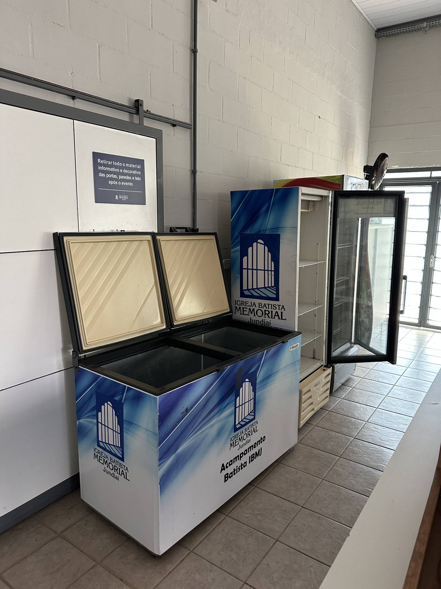 Área de apoio para equipe de trabalho, independente do refeitório e cozinha, contendo: geladeiras, freezer. Há dois quartos superiores para acomodação da equipe e banheiros (masculino e feminino) com chuveiros para banho.