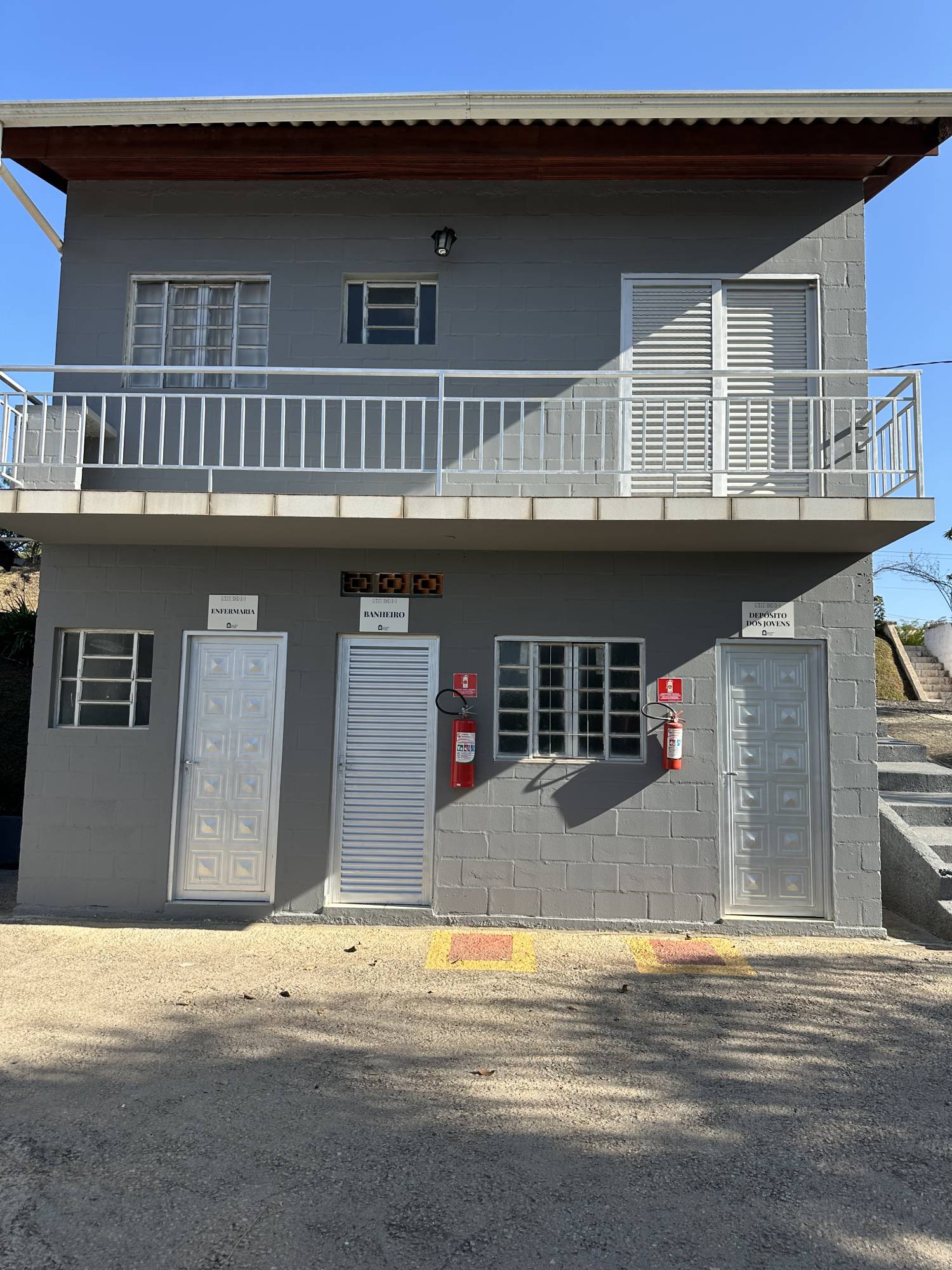 Neste prédio além das salas de apoio temos o salão de jogos (equipado com uma mesa de sinuca, uma de bilhar e uma de ping-pong) e banheiros sendo um masculino e outro feminino e cada conjunto com cinco vasos, cinco lavatórios e três box com chuveiro (elétrico) que servem para banho quando as salas são utilizadas como dormitórios